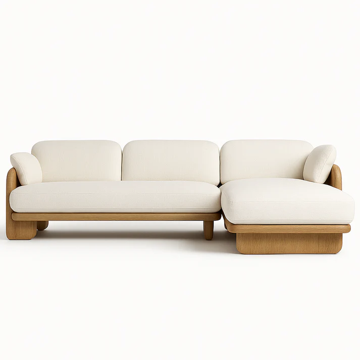 Experience timeless elegance with the Aurea Ligna Sectional Sofa Set, a sectional sofa that redefines minimalism with a natural touch. Featuring plush white cushions atop a beautifully crafted solid wood frame, this design seamlessly blends modern aesthetics with organic warmth. Perfect for contemporary or classic interiors, Aurea Ligna invites comfort and sophistication into any living space.