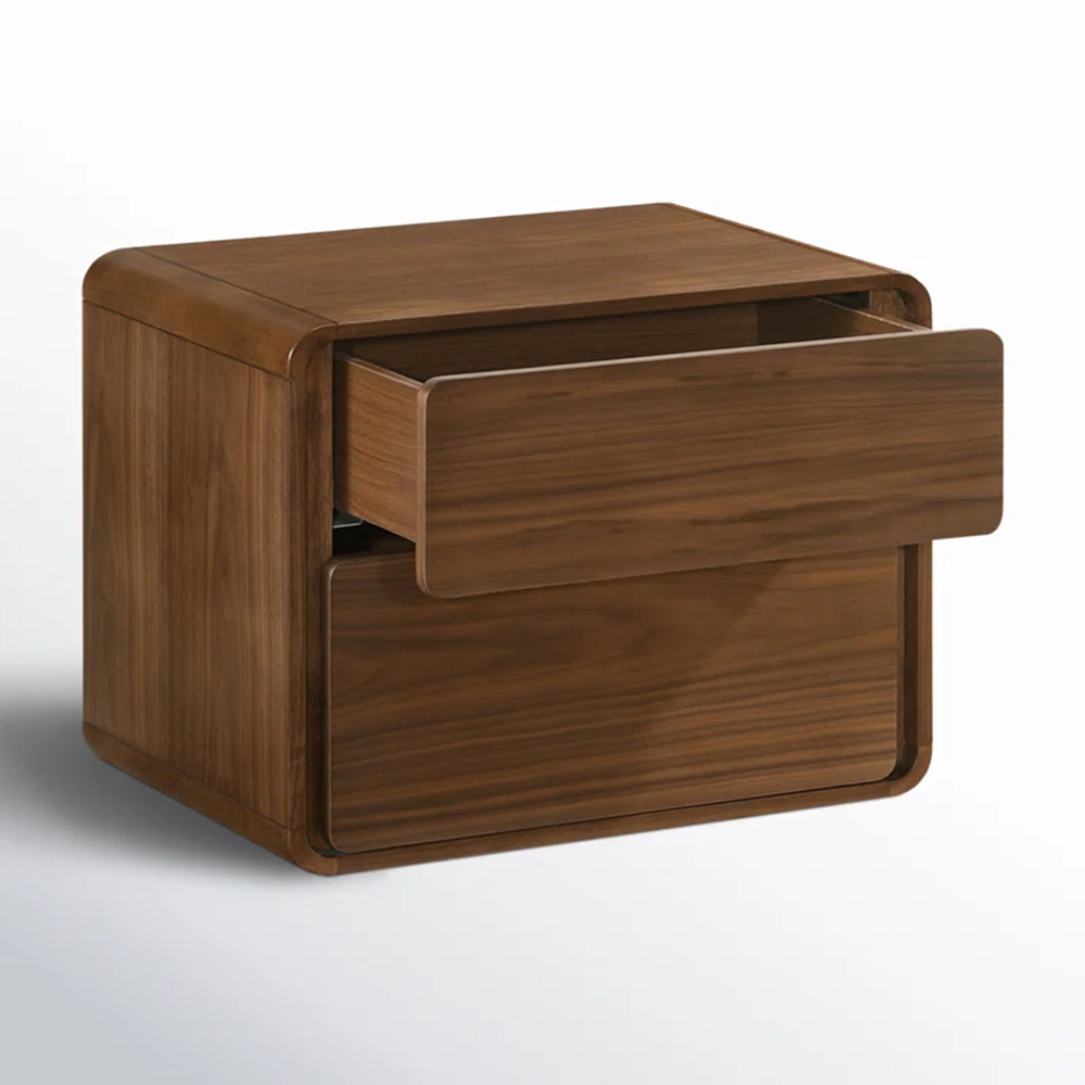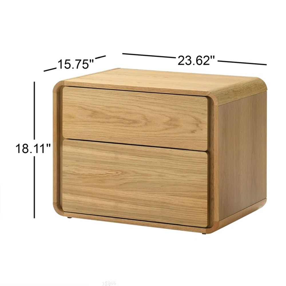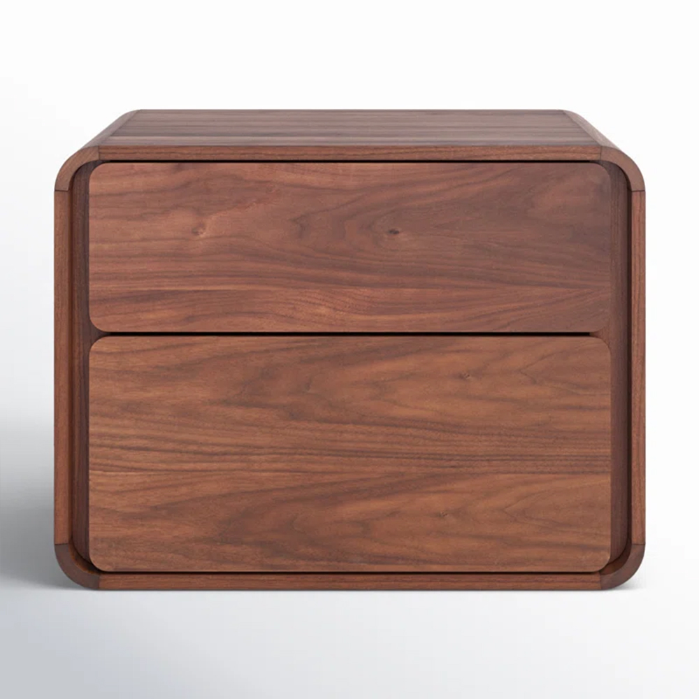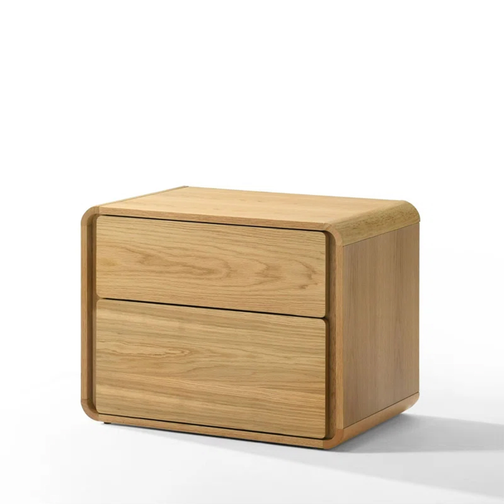 Bring streamlined storage to your Berkeley Two-Drawer Bedside Table. Crafted from solid wood, it showcases a smooth + subtle silhouette with lively natural graining. Two push-to-open drawers offer space for bedside essentials, keeping your phone, books, and reading glasses within easy reach.