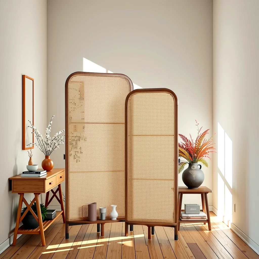 A modern take on a traditional design! The Bluffhaven Rattan Panel Room Divider gives out a relaxed mood, from its mixed materials of solid wood and natural caning, giving textural contrast to its solid wood frame finish. The rounded silhouette adds privacy wherever you need it.