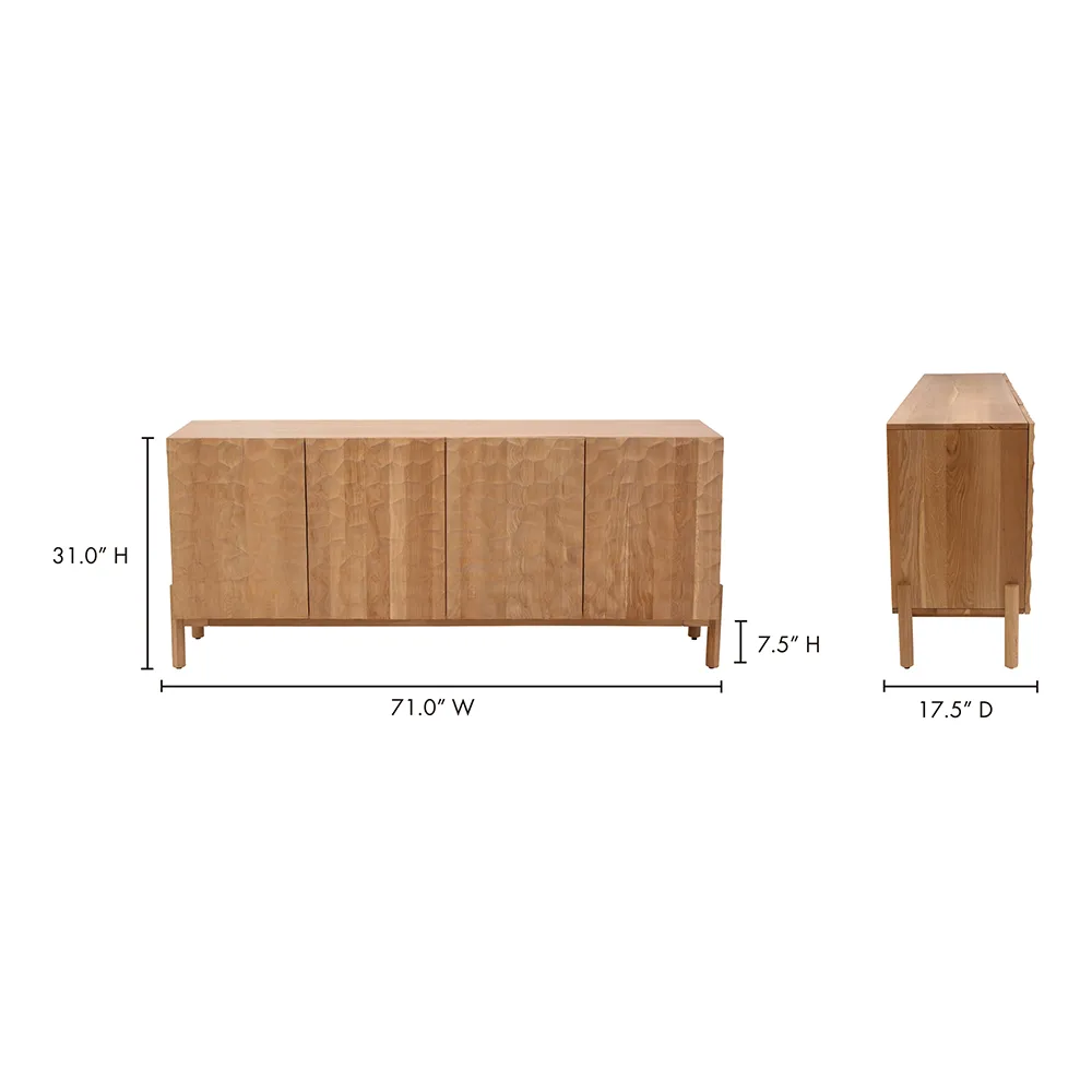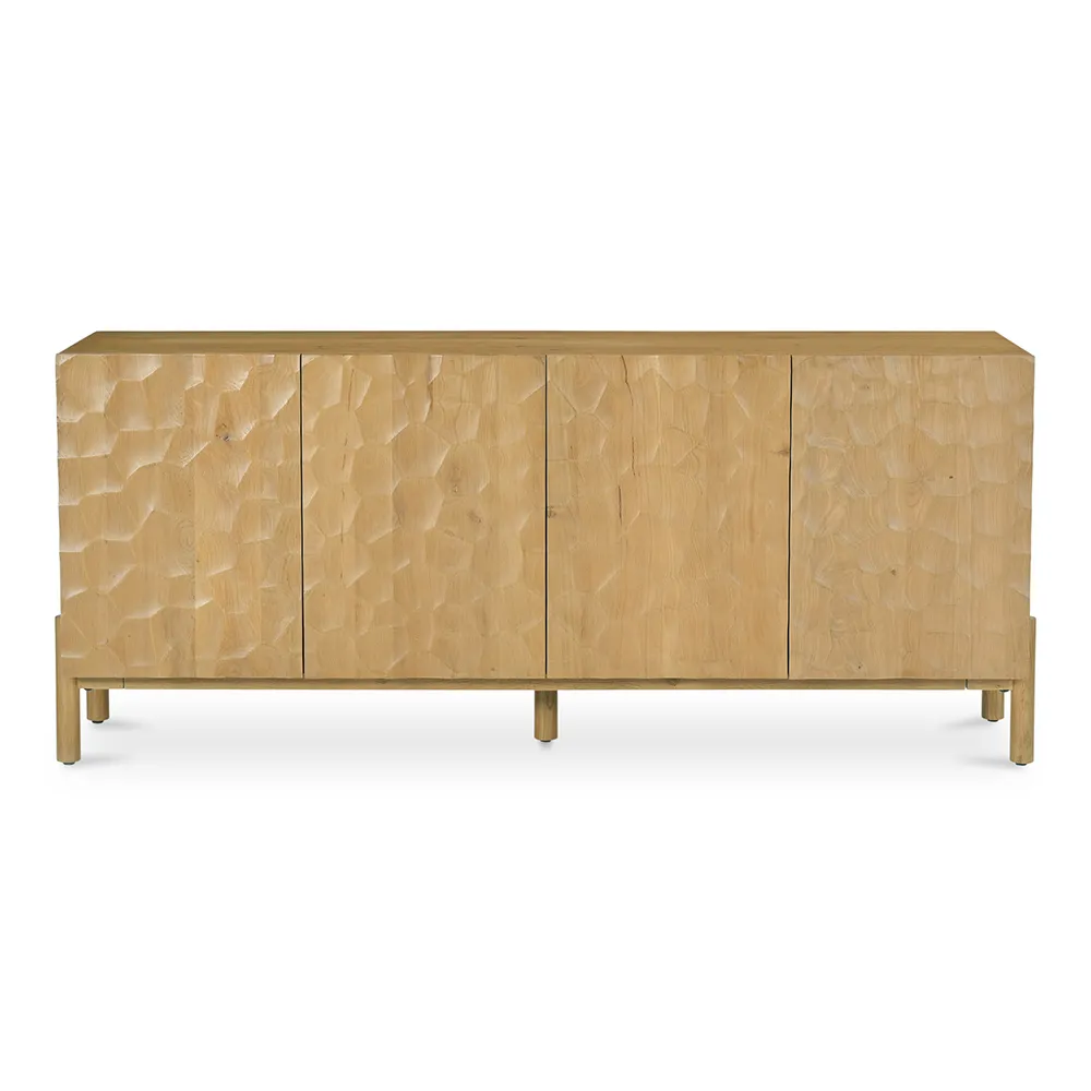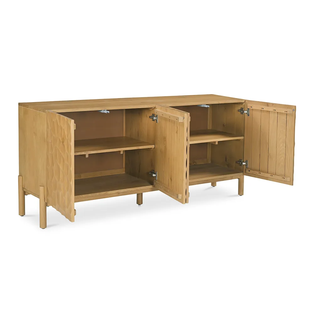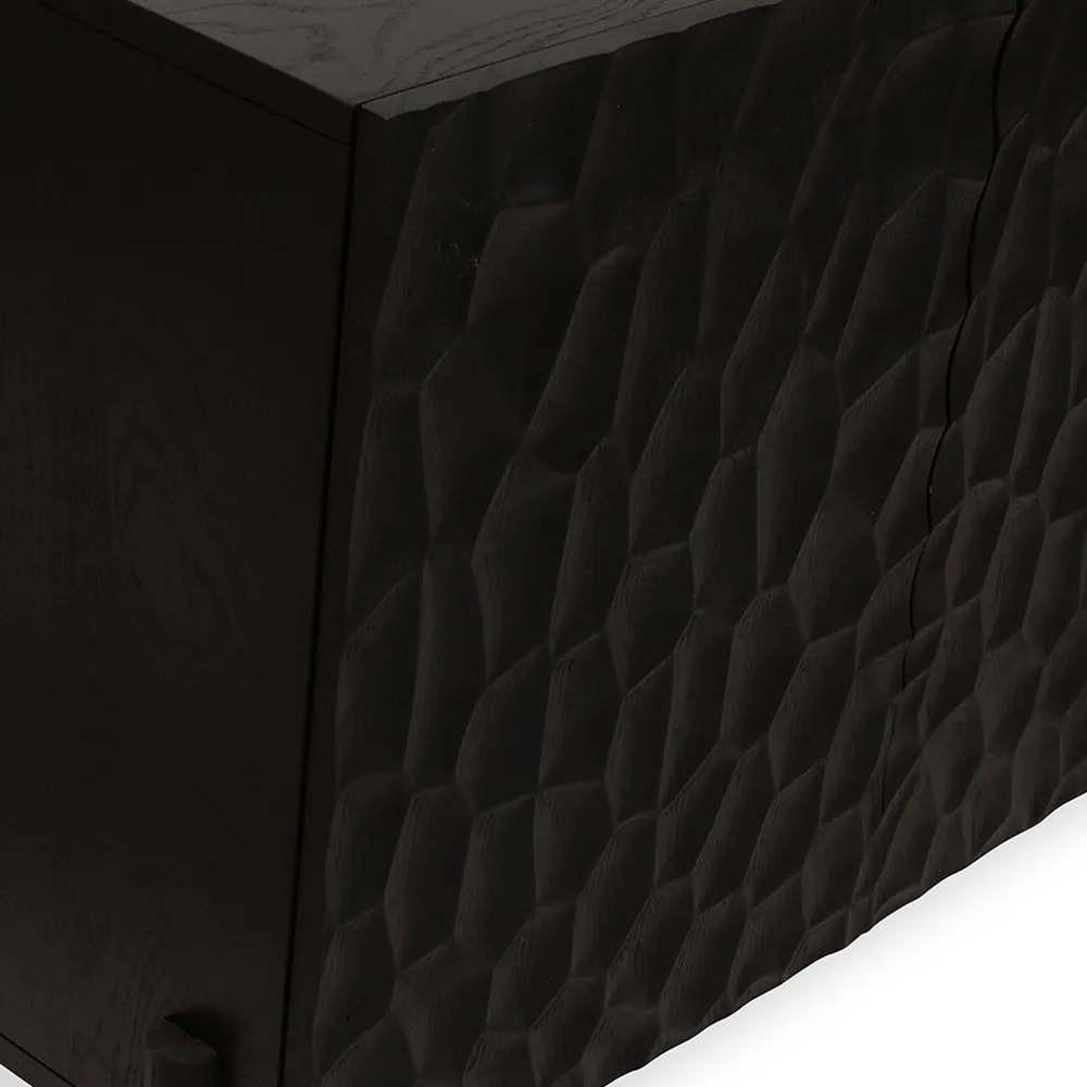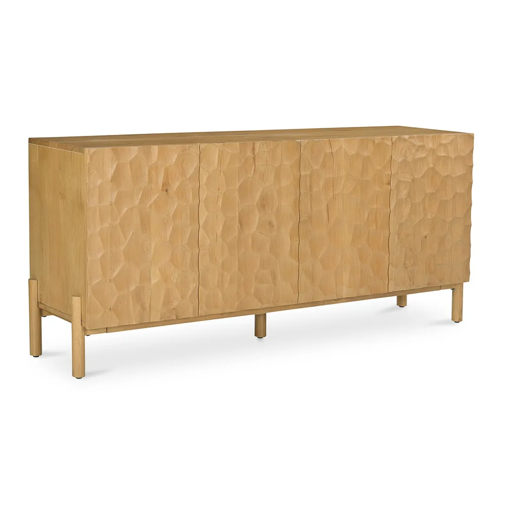 Available in dark or natural finishes, solid mango construction sets the backdrop for this stunning detailing. Organic shapes reminiscent of hand-chiseled detailing adorn the doors of the Briarvale Sideboard. Each groove is carefully carved out to lovingly represent the history and soul of this otherworldly place, adding depth and warmth to this dreamy piece. Available in dark or natural finishes, these intricate details create a grandiose feel of modern elegance, underscoring the beautiful natural wood grain of the solid wood construction.