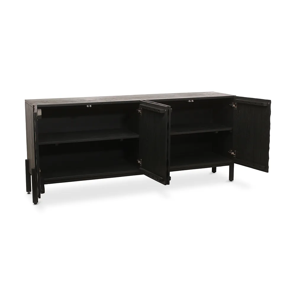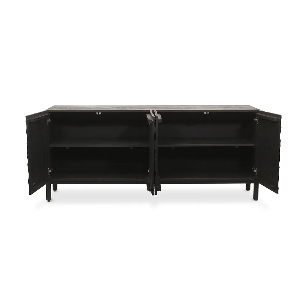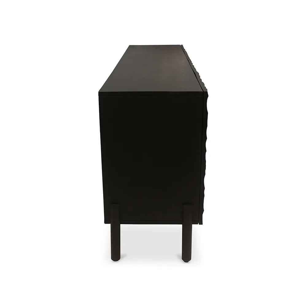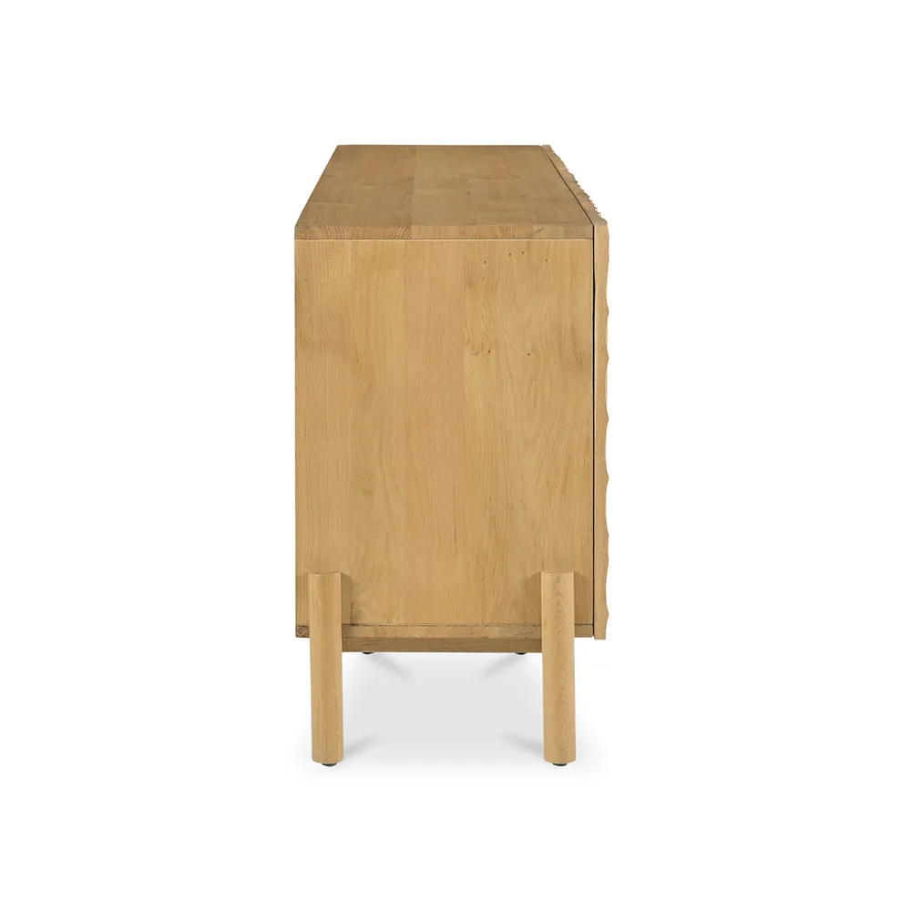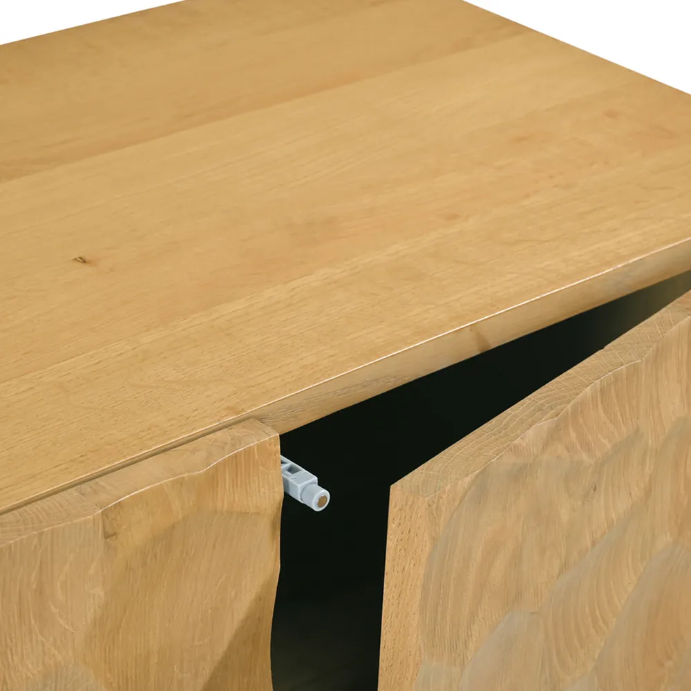 Available in dark or natural finishes, solid mango construction sets the backdrop for this stunning detailing. Organic shapes reminiscent of hand-chiseled detailing adorn the doors of the Briarvale Sideboard. Each groove is carefully carved out to lovingly represent the history and soul of this otherworldly place, adding depth and warmth to this dreamy piece. Available in dark or natural finishes, these intricate details create a grandiose feel of modern elegance, underscoring the beautiful natural wood grain of the solid wood construction.