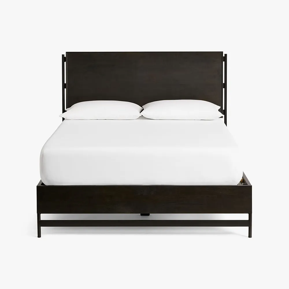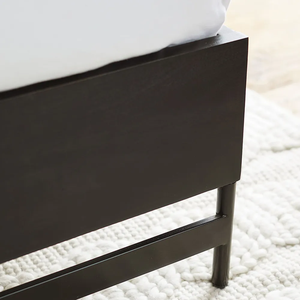 Classics Merrivale Platform Bed masterfully crafted with solid mango wood. Crafted of mango wood, a sustainably sourced and ultra-durable hardwood. Finished by hand, using a multi-step process that highlights the wood’s natural grain. Slat roll support system. The bed is designed for use without a box spring.