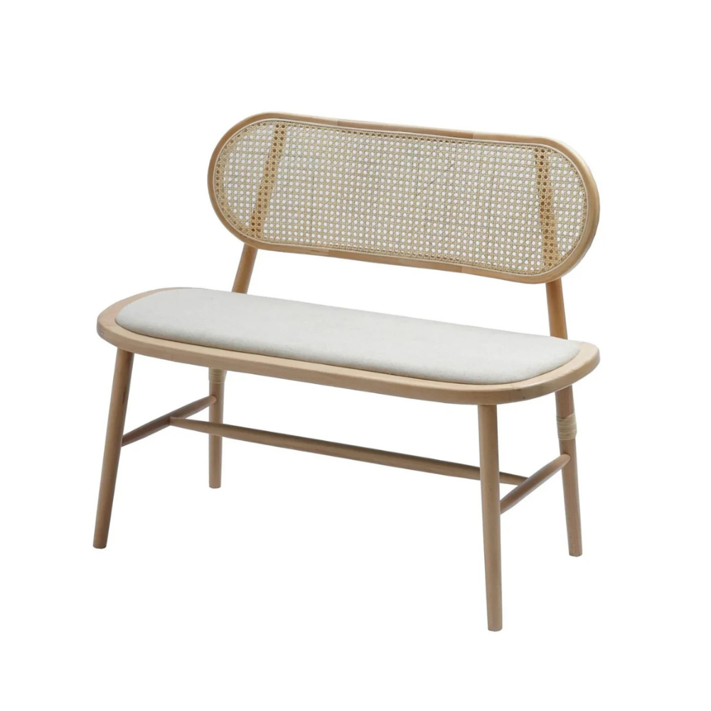 Elevate your home decor with the exquisite Dawson Bench – a blend of style and sophistication. Constructed from premium materials such as solid wood, rattan, and fabric, this bench adds a touch of luxury to any room.