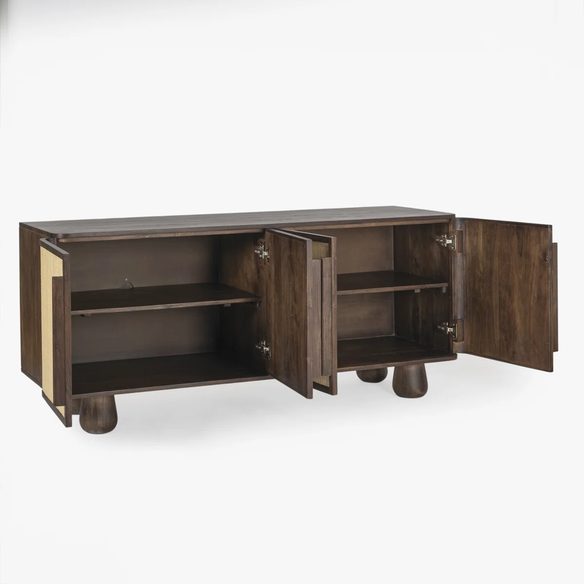 The Devlin Sideboard is the epitome of organic elegance. This buffet features a meticulously crafted cabinet with a rich grasscloth finish, complemented by solid acacia wood. The unique combination of textures and materials creates a stunning visual contrast, making the Torben Buffet a statement piece for your dining area.
