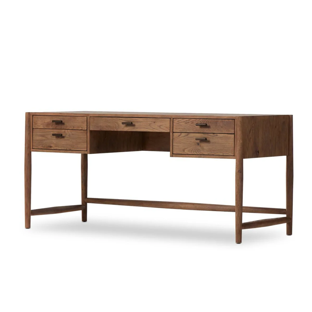 Glenview Study Desk made from solid wood, brings generous storage space to the office. Simple hardware is finished in an aged bronze.