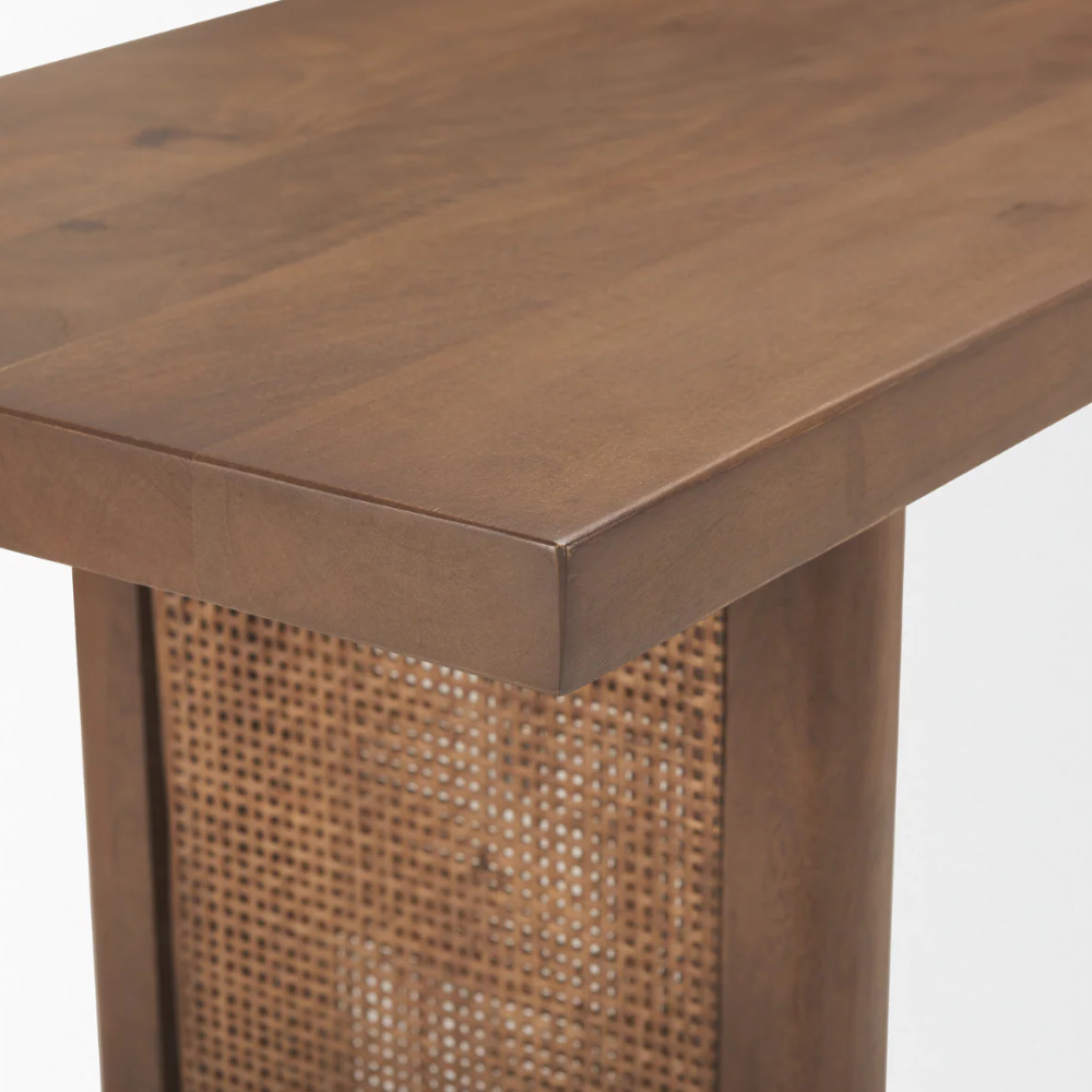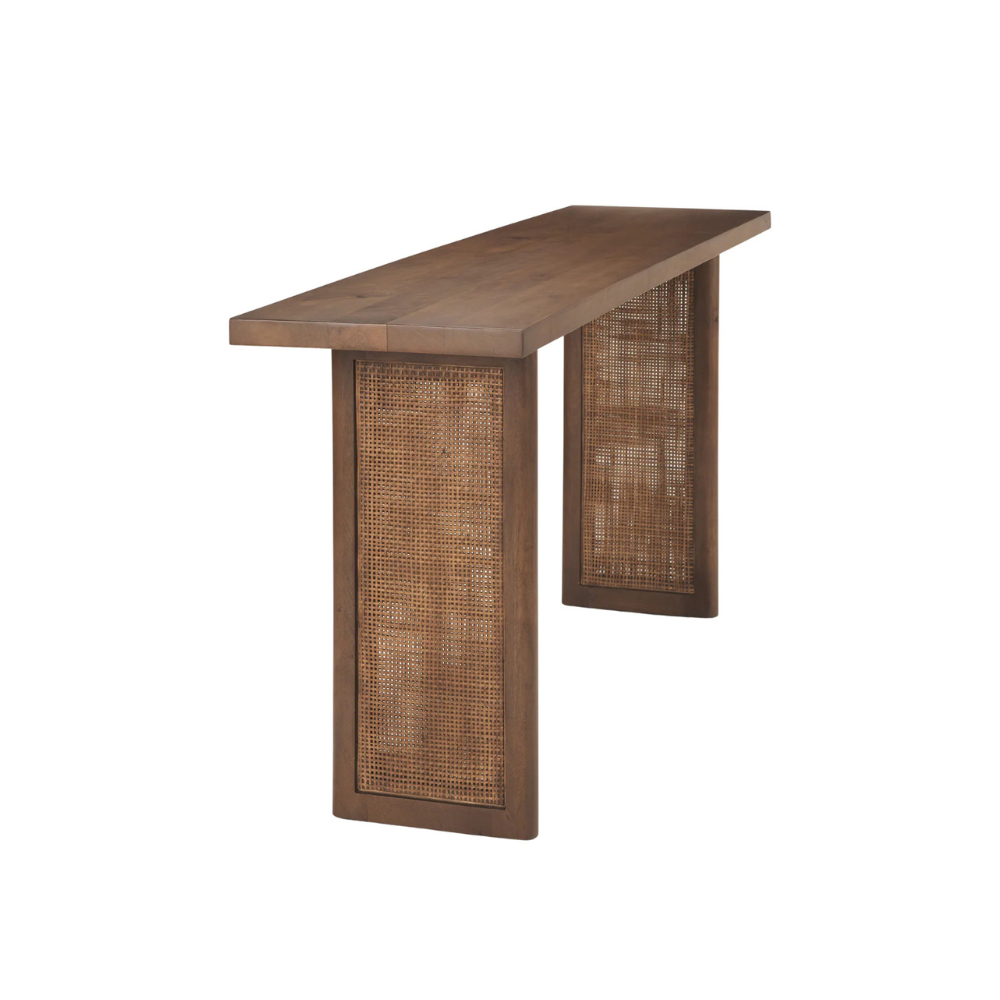 Sleekly crafted from solid wood and finished with classic cane details, the Grier Console Table brings a sense of relaxed sophistication to contemporary living spaces. This console table is a beautiful accent piece that enhances entryways, hallways, living rooms, great rooms, or office spaces, offering a beautiful surface to display objects, trays, and accessories.