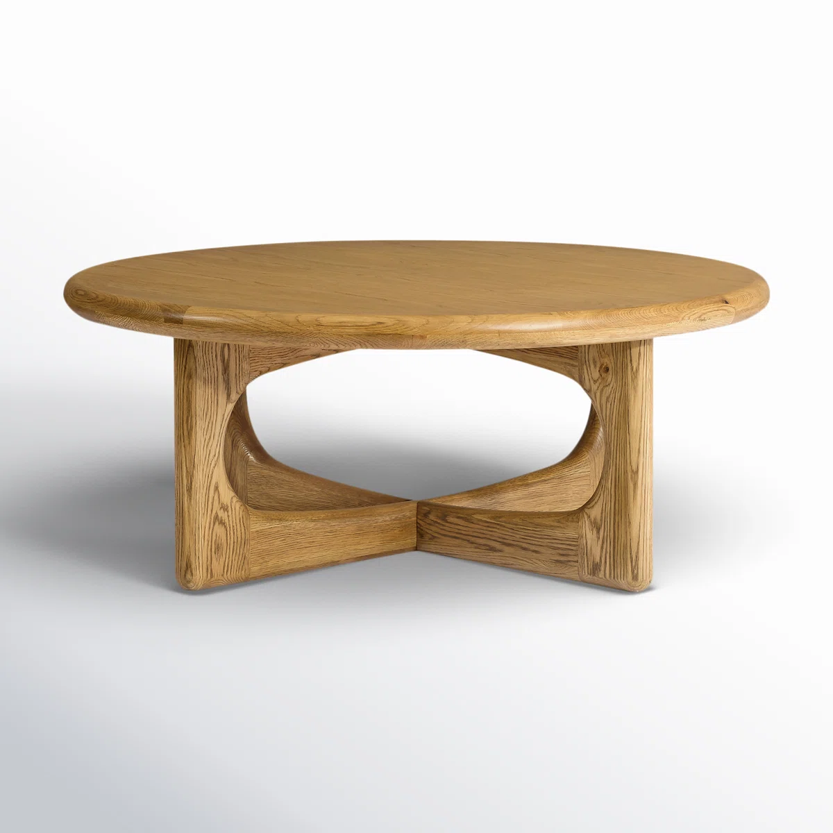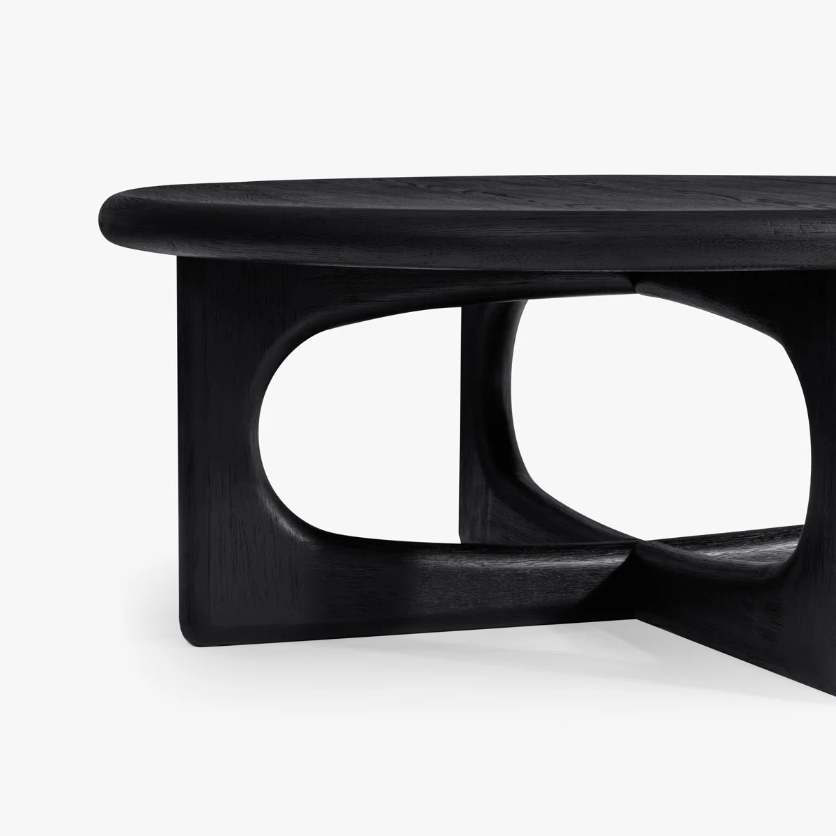 Griffey Coffee Table is crafted from solid wood. The collection is grounded by each piece’s sculptural, architectural base, all carved from solid wood. The natural grain patterns of the solid wood are visible, adding character and warmth to the overall appearance.