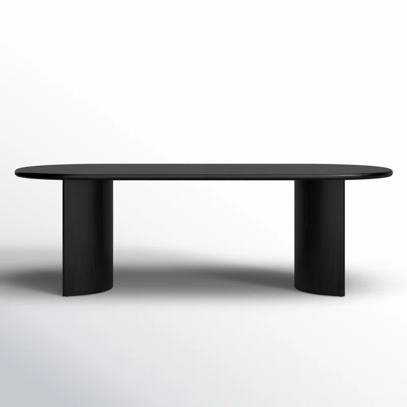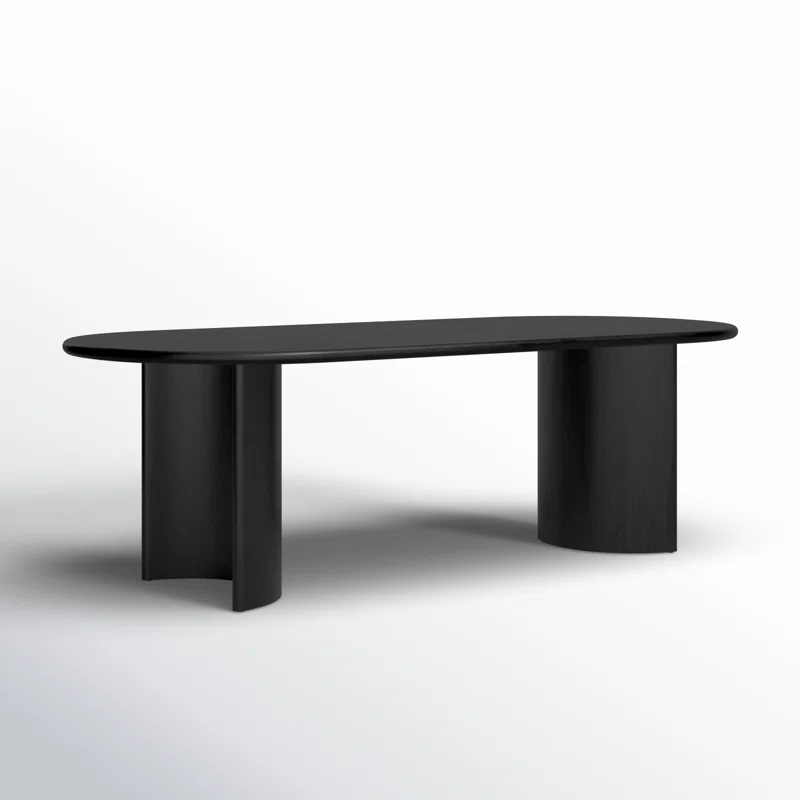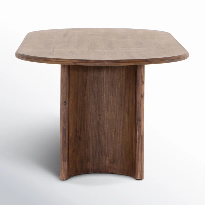 This Haiden Oval Dining Table brings a sleek, minimalist aesthetic to your dining room. Made from solid acacia wood, it showcases unique natural wood grain. The double-arching base adds a sculptural, architectural touch, while the surface is spacious enough for a dinner party. Pair it with the dining chairs of your choice (sold separately).