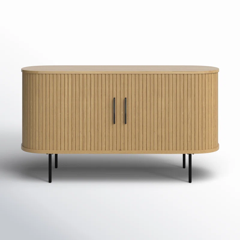 Iris Sideboard has a mid-century silhouette with plenty of storage. It’s built with sturdy kiln-dried wood + finished with solid wood for an organic look. Dynamic sliding tambour doors offer an architectural aesthetic and open to reveal generous storage compartments. Pair with other pieces from the collection for a cohesive look.