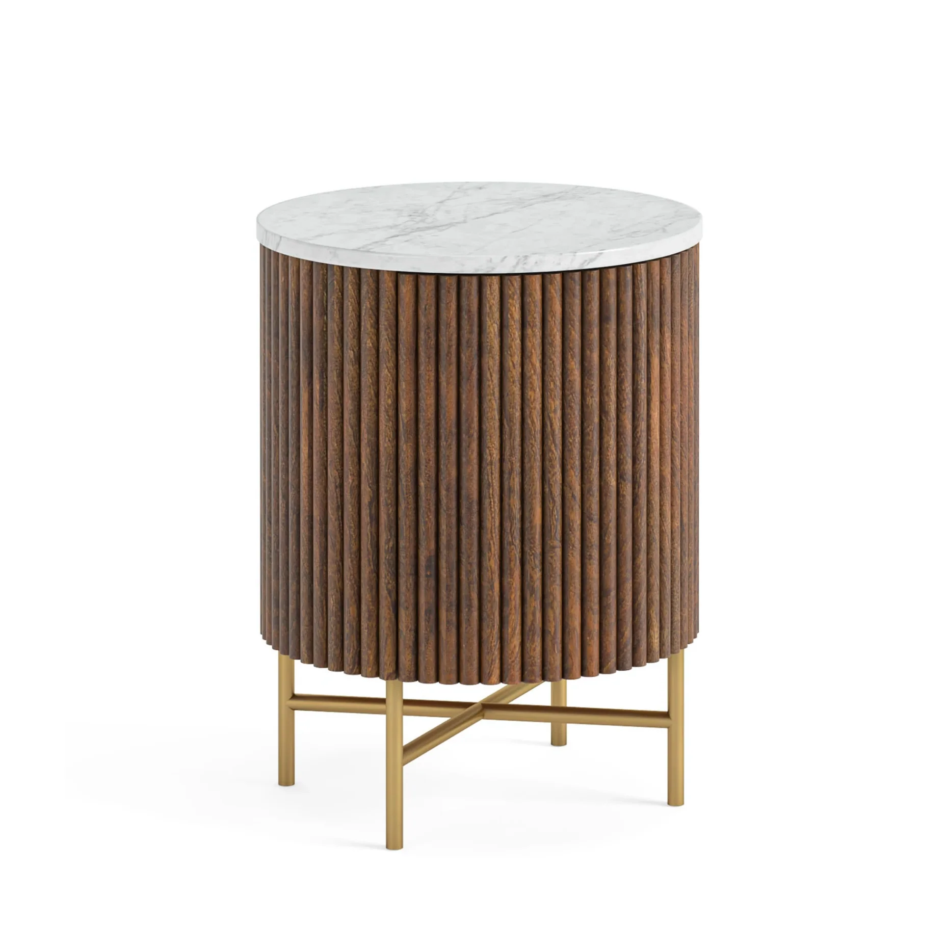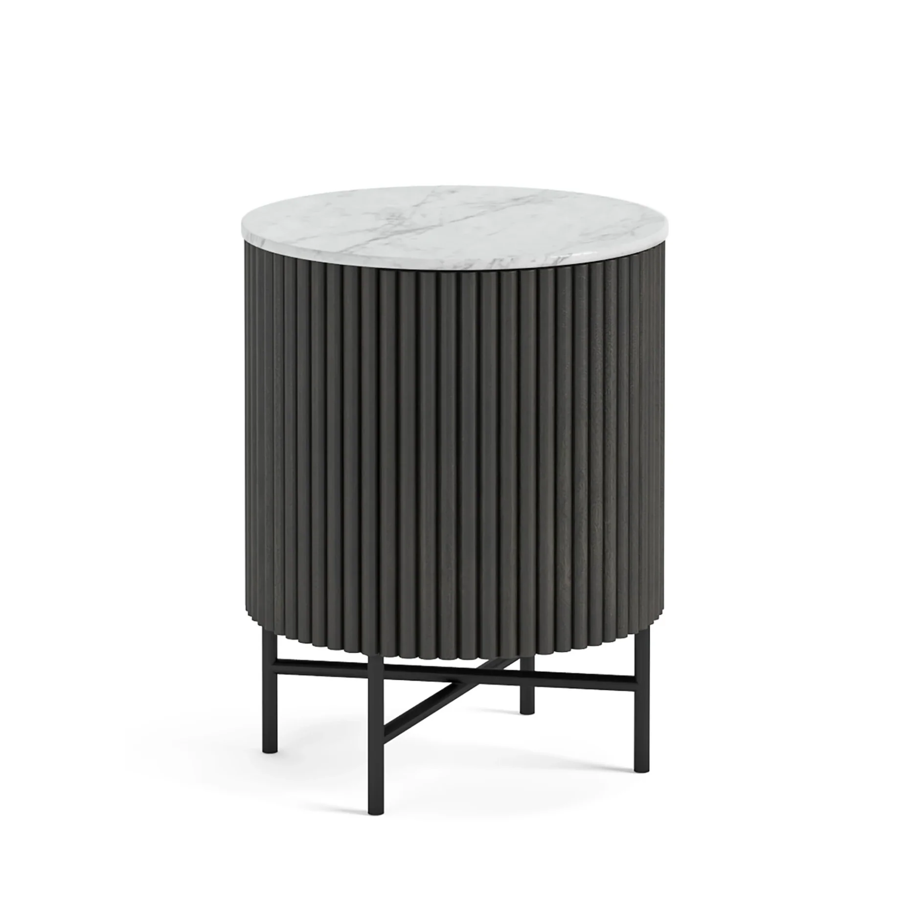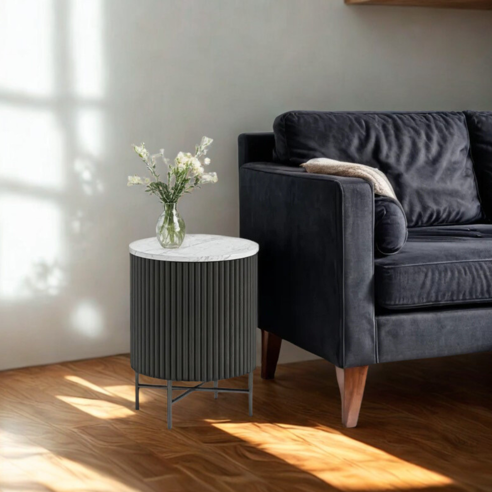 We love the bold, clean, and modern look of the Meadowhaven Side Table! The flute’s sides of this occasional table are crafted from quality solid wood finished in a striking matt black or warm walnut stain. The top is made from a slab of stunning Marble. Due to the natural veins and markings this material offers, every single piece is unique, and such a beautiful material adds to the character of this piece.