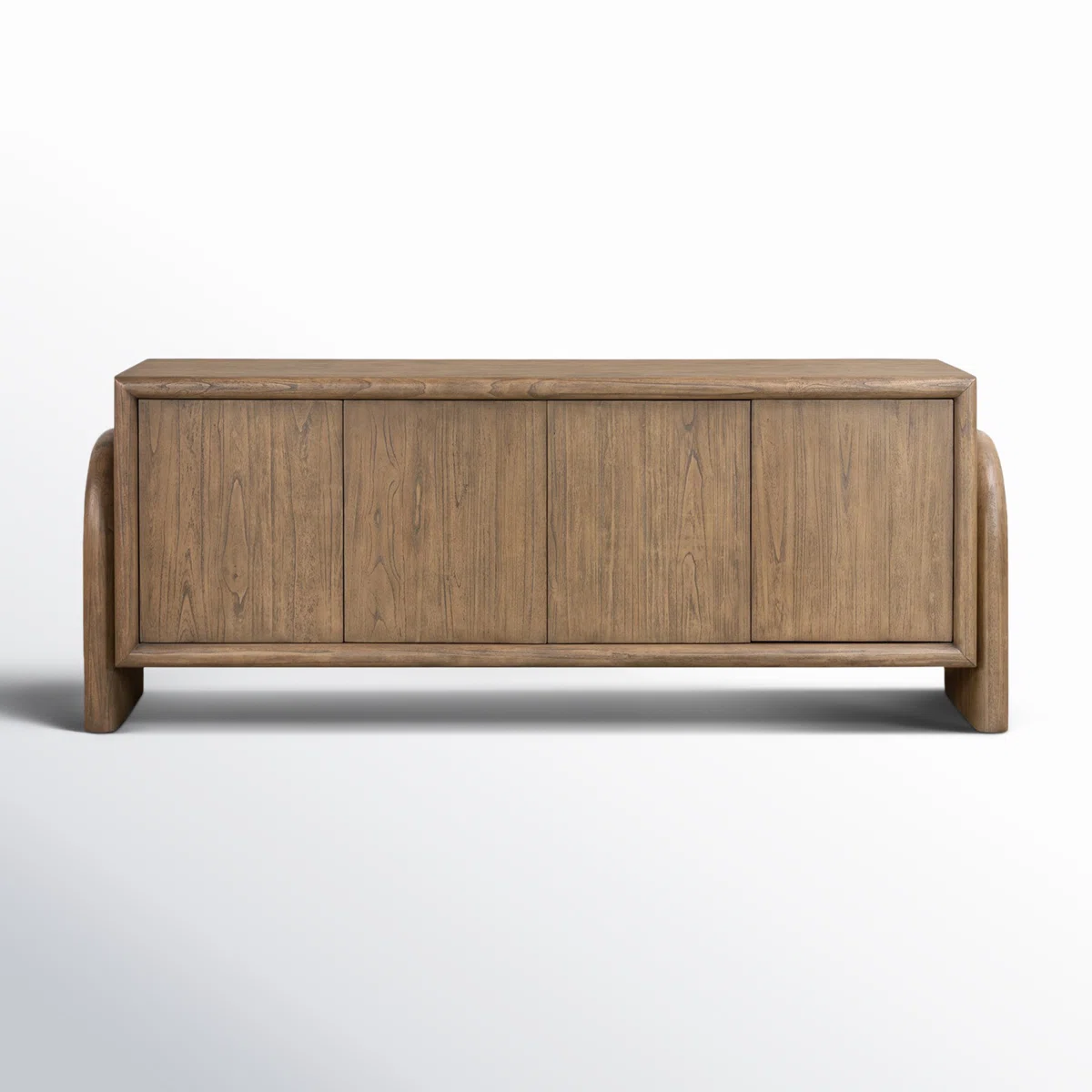 Enhance the coziness of your living space with this Modern Design Fan Sideboard. It’s crafted from wood and showcases four elegantly designed cabinet doors, leading to four spacious interior shelves that provide ample storage space to organize all your essentials. The sideboard’s natural wood grain variations invite a serene touch of nature into your home, adding to its unique charm and character. Its robust design not only offers practical storage solutions but also serves as a stylish focal point in any room.