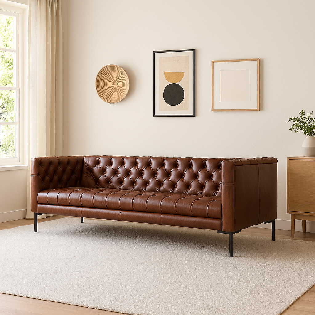 Tufted Ensemble Leather Sofa | Premium Genuine Leather