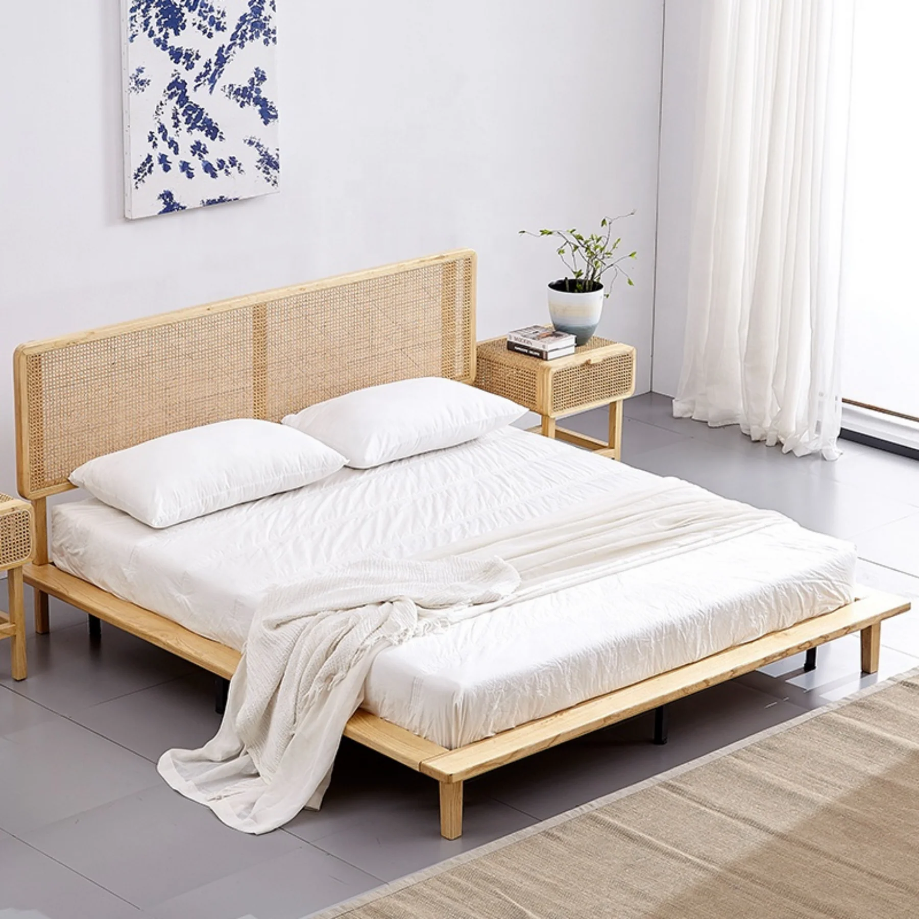 Natural Cane Elmsley Bed is a piece of furniture designed to provide a comfortable and sturdy sleeping platform for a mattress. It is typically constructed entirely or primarily from solid wood, which means that the frame and often the headboard and footboard are made from genuine wood rather than composite materials. This design choice imparts durability, longevity, and a classic aesthetic to the bed. Components can vary in design, from simple and sleek to ornate and decorative.