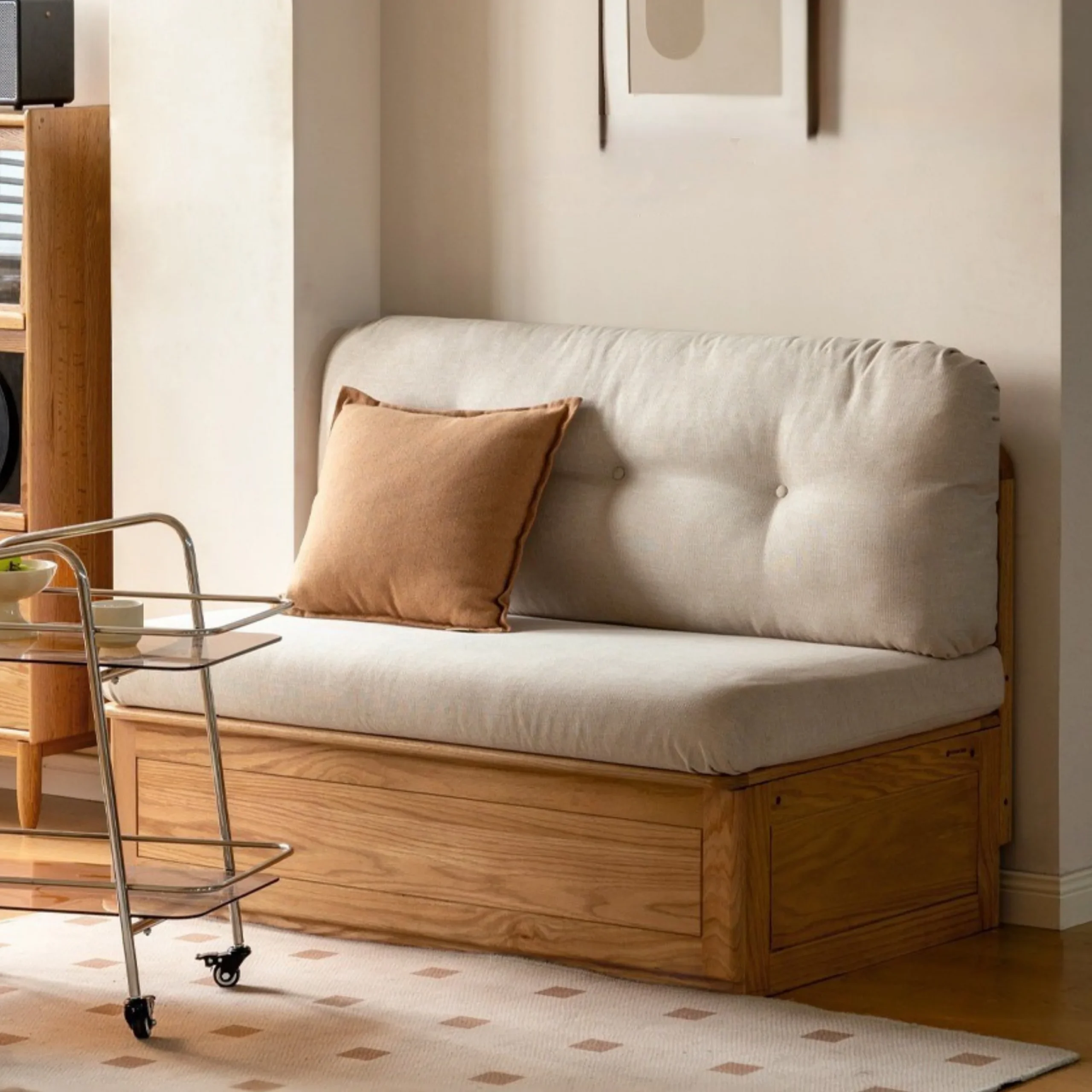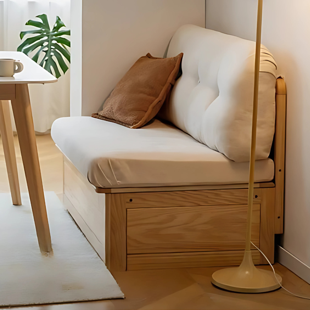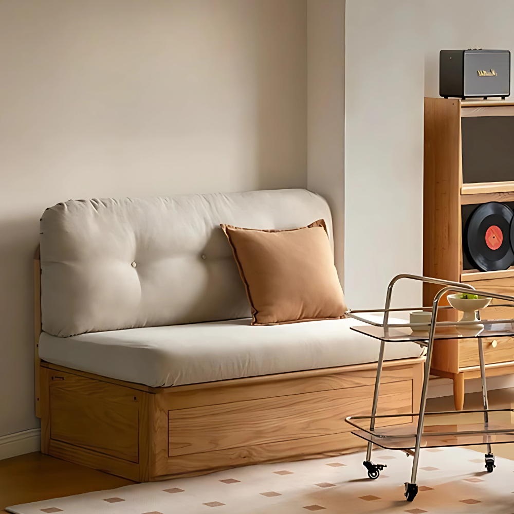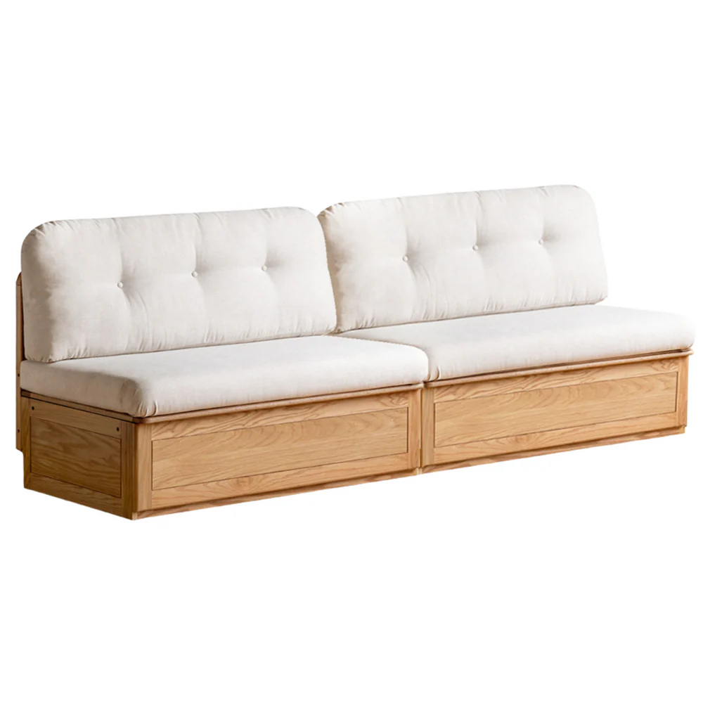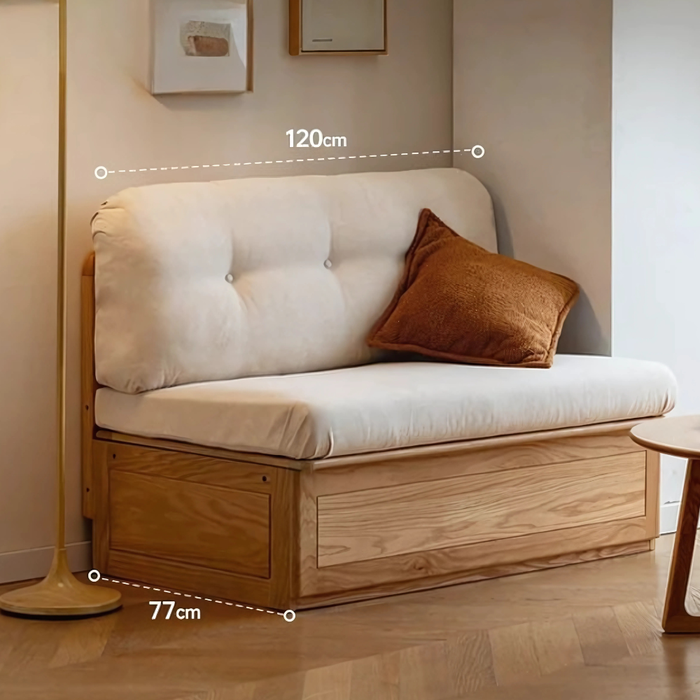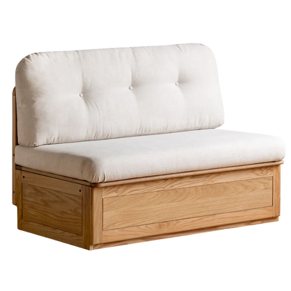 The Prague Box Storage Sofa’s solid wood part is 100% pure solid wood, and the solid wood-based panels. The auxiliary material is solid wood, which is used for the lower horizontal backrest and the neutral solid wood seat. it has good toughness, stable properties, light texture, and straight texture with few scars.