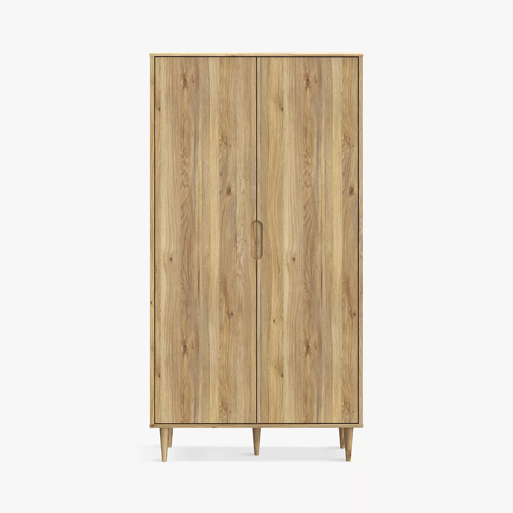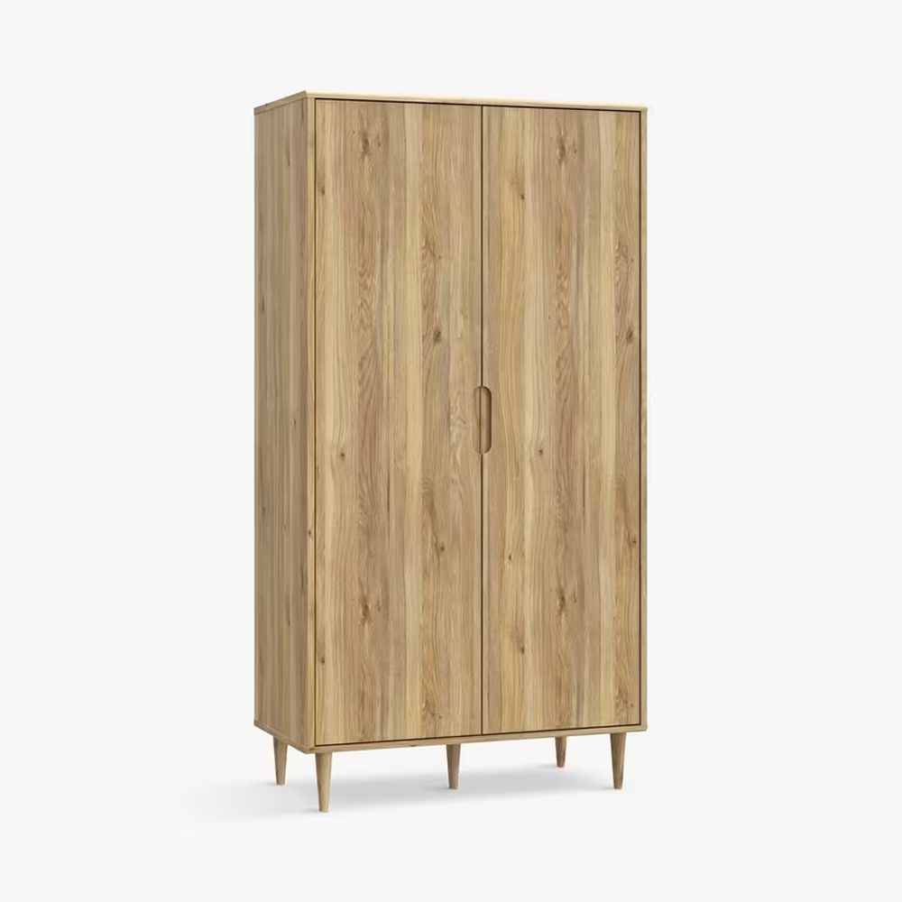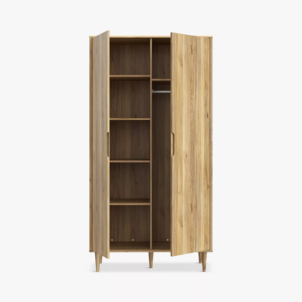 The Sherbrooke 2 Door Wardrobe is an excellent fit for the bedroom, living room, or hallway. It features a convenient metal clothes rail and shelves for towels, bedding, or other household accessories. The tall wooden legs add lightness to the wardrobe, while the recessed handle seamlessly integrates into the doors, adding to the clean lines of the furniture.
