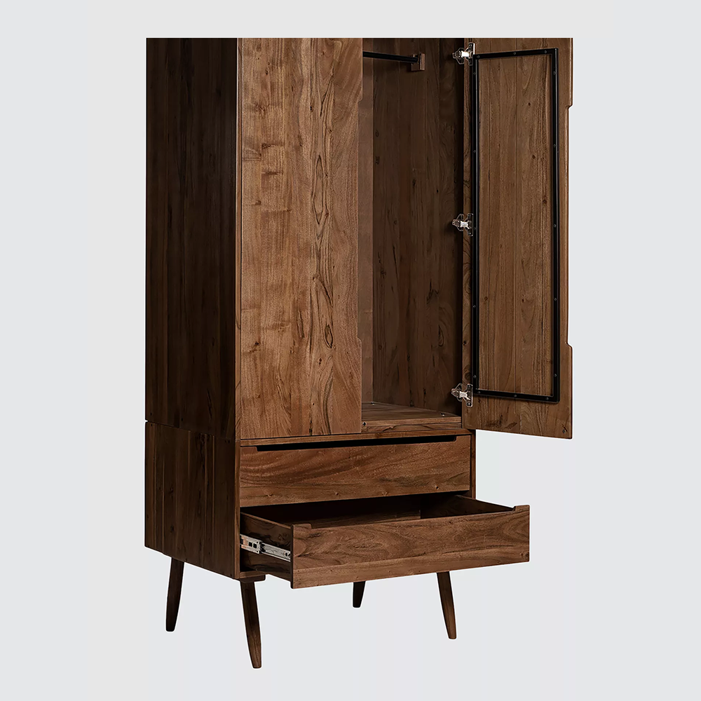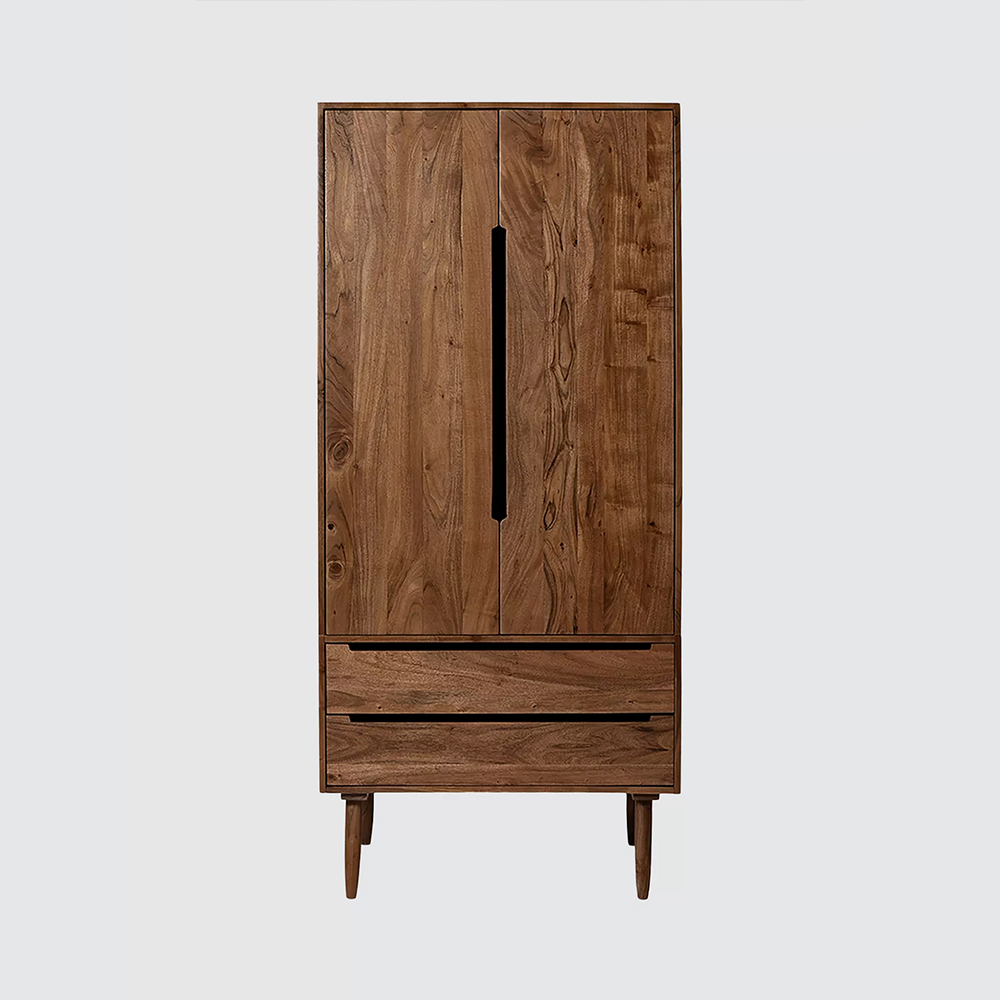 Crafted from rich acacia wood, the Southwark Double Wardrobe with 2 Drawers brings sculptural beauty and smart storage to any bedroom. Built to last, designed to impress.