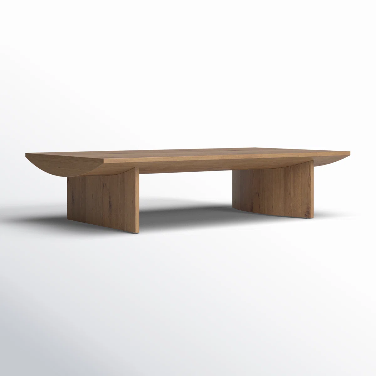 Low-styled and shape-driven, Statler Sled Coffee Table made from thick-cut solid wood features oversized proportions and half-moon shaping, with a dusted natural finish.