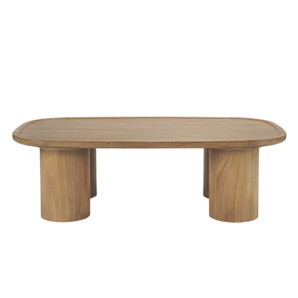 Tavi is a rectangular coffee table that evokes contemporary allure, exquisitely crafted from solid wood. Supported by a cluster of four sleek cylinder columns, each meticulously carved from wood, the table stands as a testament to both form and function. Finished in a smooth, soothing natural finish, this coffee table seamlessly blends sophistication with warmth, making it a captivating centerpiece for any living space seeking a touch of retro charm.