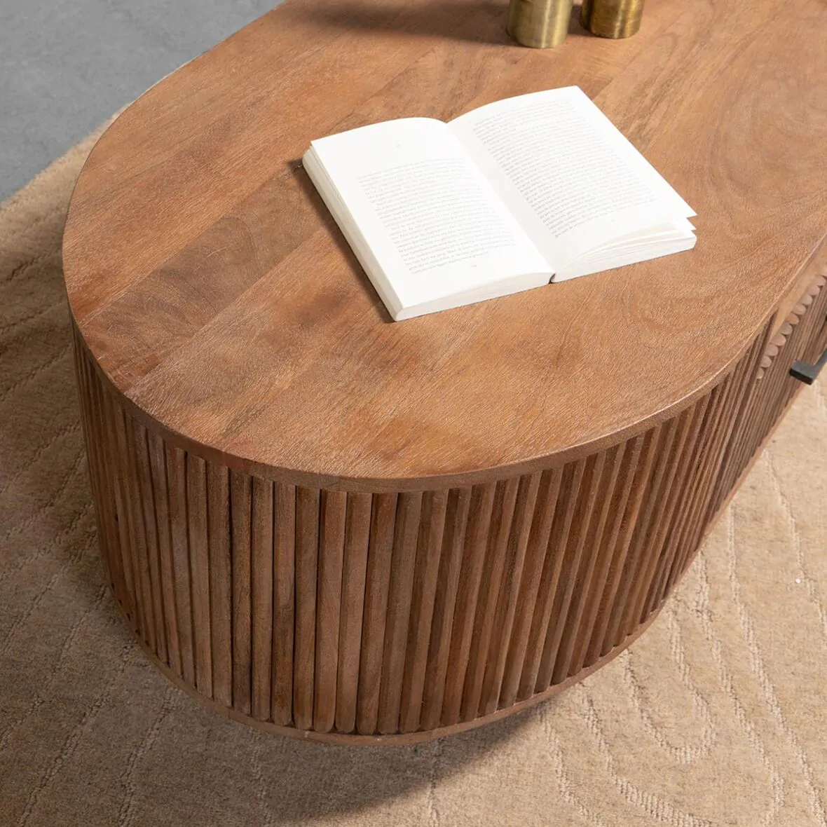 This item is part of the Umberhill home series. A beautiful living series made of solid wood. Umberhill Oval Coffee Table gives this furniture an industrial and vintage look.