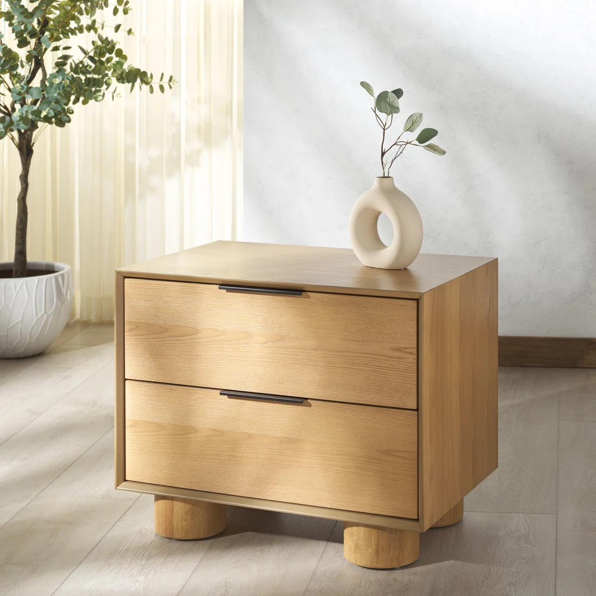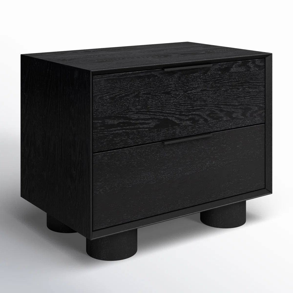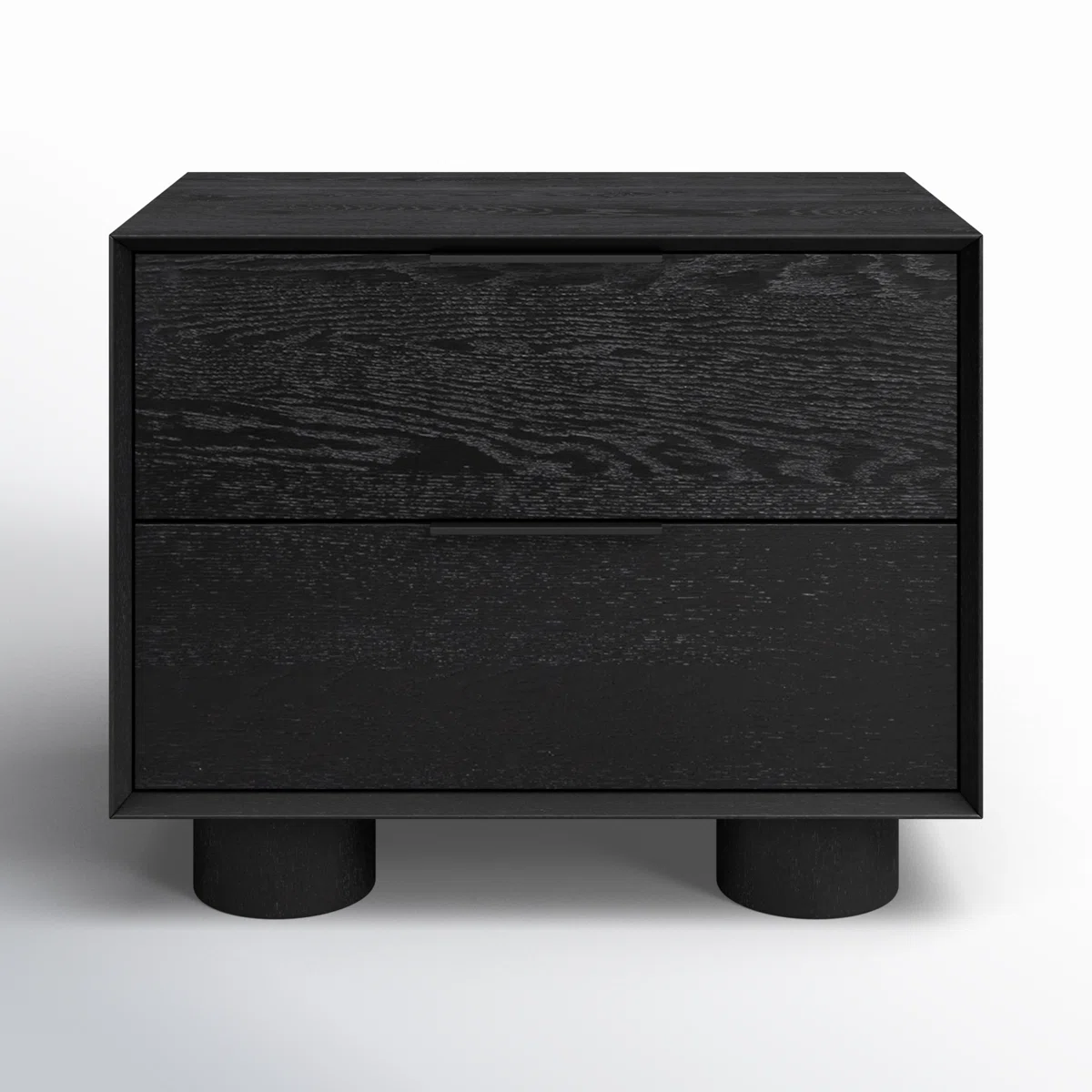 Introducing our Vanora Two-Drawer Nightstand. This stable, dependable nightstand is a magnificent addition to any bedroom setup, handcrafted from solid wood. Exuding an enticing black hue, this stunning piece adds to your room’s aesthetics while lending a touch of convenience. Built with attention to detail, the design features dual spacious drawers and ample tabletop space for your bedtime essentials. Each drawer features a sleek IRON handle, contributing to the overall robust and seamless design. Not just visually pleasing, it’s solid wood foundation ensures strong support, while the substantial IRON metalwork emphasizes the reliable construction and the nightstand’s sturdiness. Embrace the marriage of style and functionality with the Vanora Two-Drawer Nightstand in black, crafted with the utmost attention to design, functionality, and lasting appeal. Make an investment in the aesthetic of your bedroom that is certainly worth it. Order your Vanora Two-Drawer Nightstand now and experience the amalgamation of style, durability, and practicality.