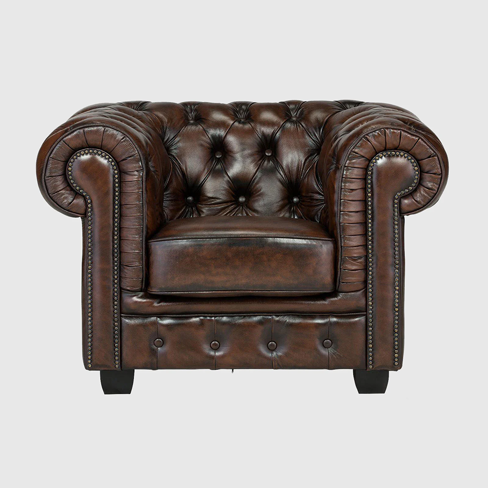 For over 50 years, the Chesterfield silhouette has remained a customer favorite, admired for its timeless appeal and enduring charm. With age, the natural patina only enhances its authenticity, ensuring that each sofa becomes more beautiful over time.