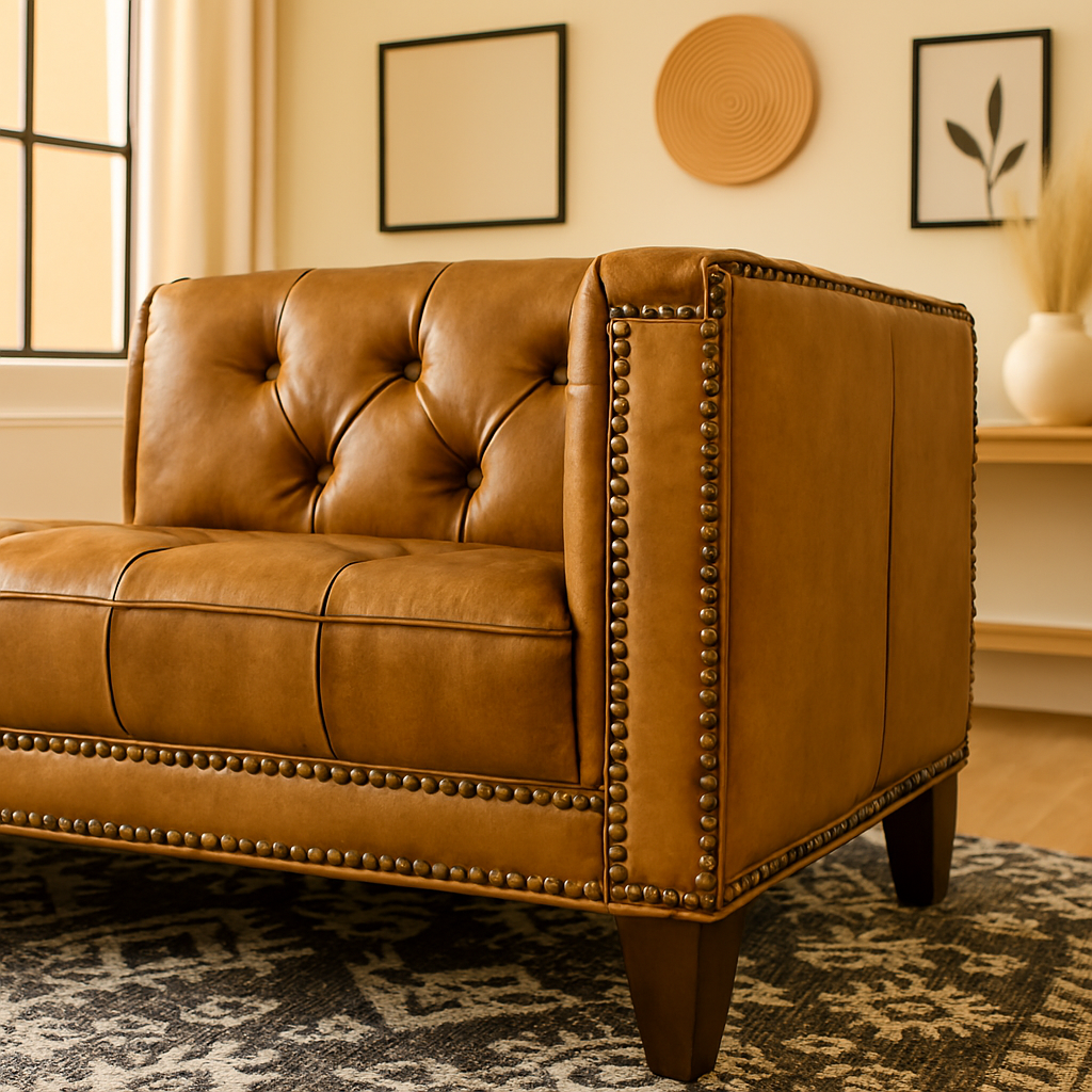 Tufted Ensemble Leather Sofa | Premium Genuine Leather