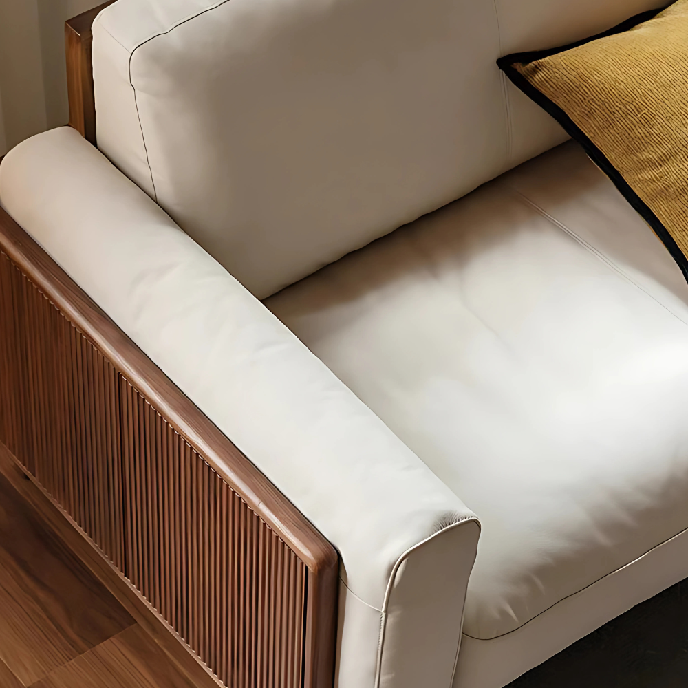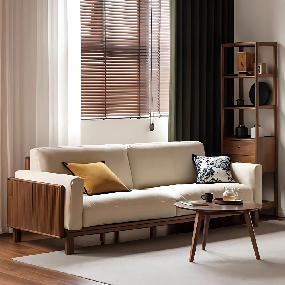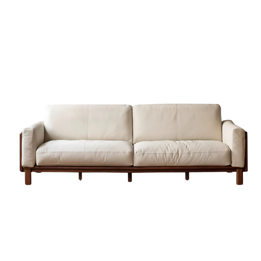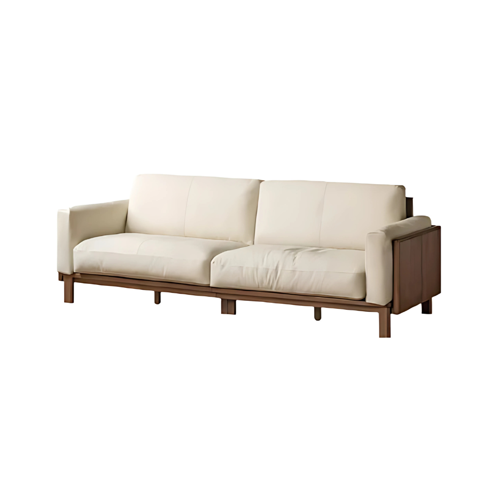 Zelvyn Leatherette Sofa is made from a solid wood leatherette sofa with walnut finish, new Japanese style living room, high back sofa, and a small apartment walnut straight sofa.