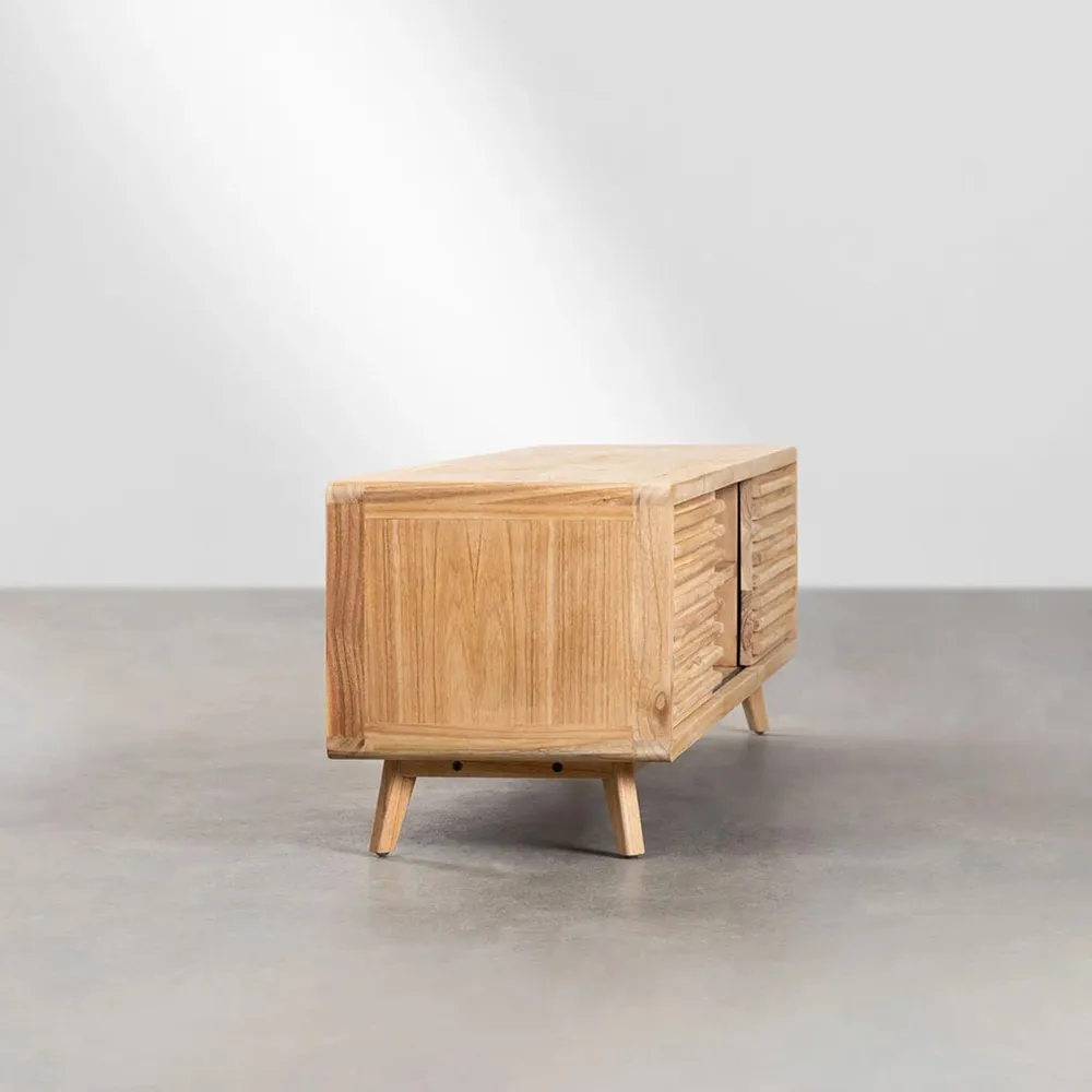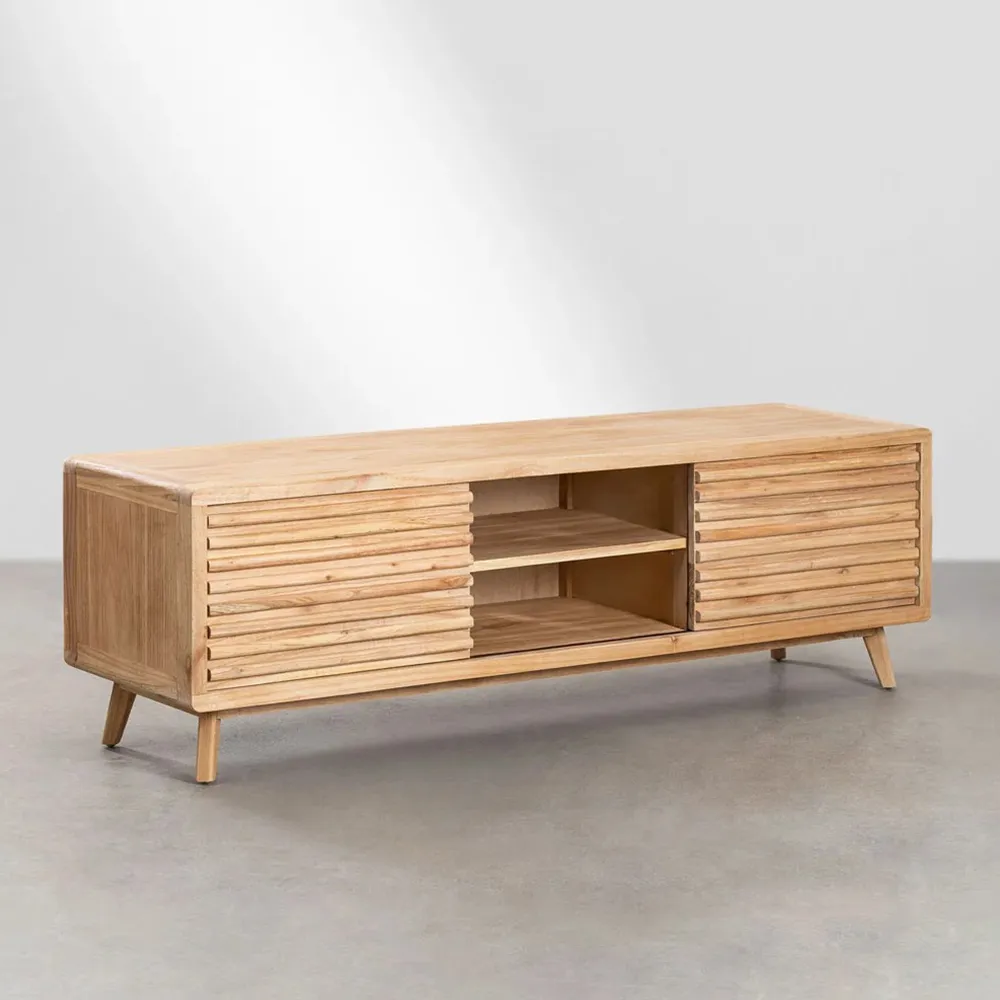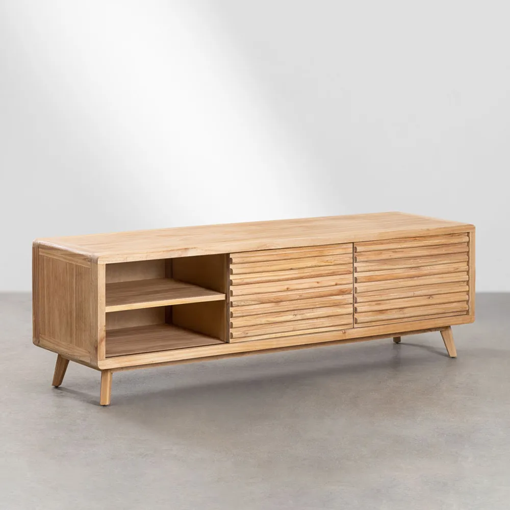 The Wooden Zenith TV Cabinet is ideal to enhance, in a sophisticated way, living rooms with a natural style. Made with solid wood, a type of material that adapts to the climate and is resistant to pests. Zenith is a piece of furniture of great beauty, as it has veining and a colour that ranges from chestnut natural to reddish tones. It has two doors that you can move along its aluminum rail and an exposed shelf. A versatile and chameleonic piece of furniture that offers you various designs, you choose! Combine it with the rest of the Zenith collection and create very charming spaces. Remember that each piece is unique with its own details and variations due to its material.